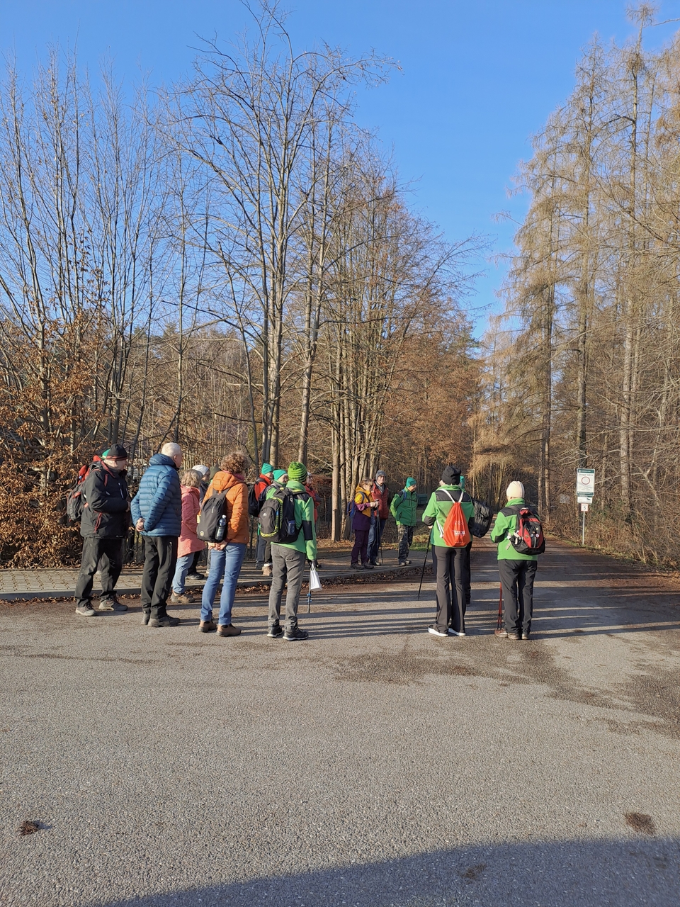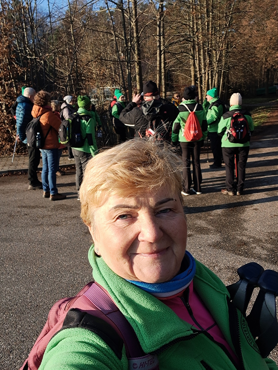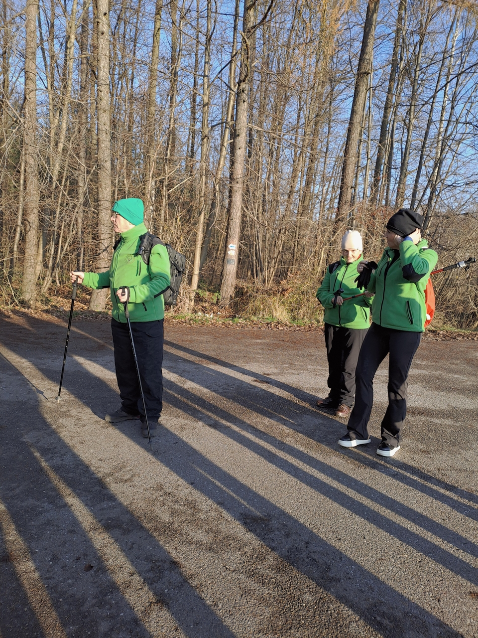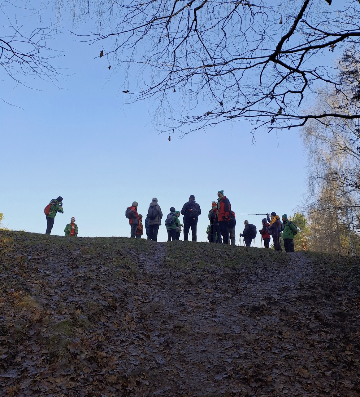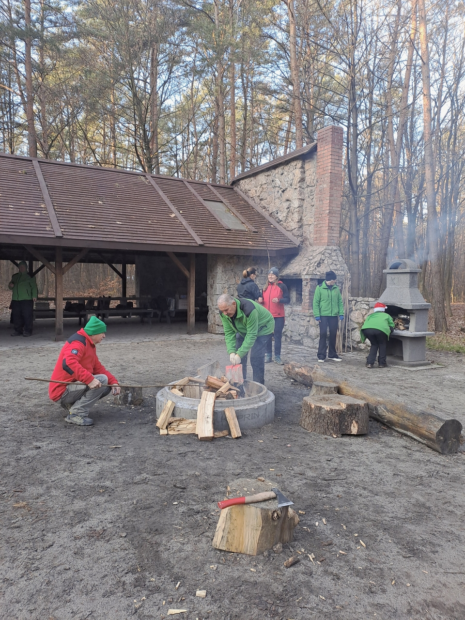 Na miejsce zbiórki przy ul Żytniej przybyła nieliczna, kilkuosobowa grupka, co trochę nas zdziwiło, bo zapowiadała się ładna, słoneczna pogoda, o co w bieżącym roku bardzo trudno. Na szczęście trochę osób siedziało już w autobusie, po drodze dosiadały kolejne a pod wiatą czekali jeszcze organizatorzy ogniska i wigilijnego wystroju. Ostatecznie w wydarzeniu wzięło udział 35 osób, zarówno członków, jak i sympatyków “Przygody”.