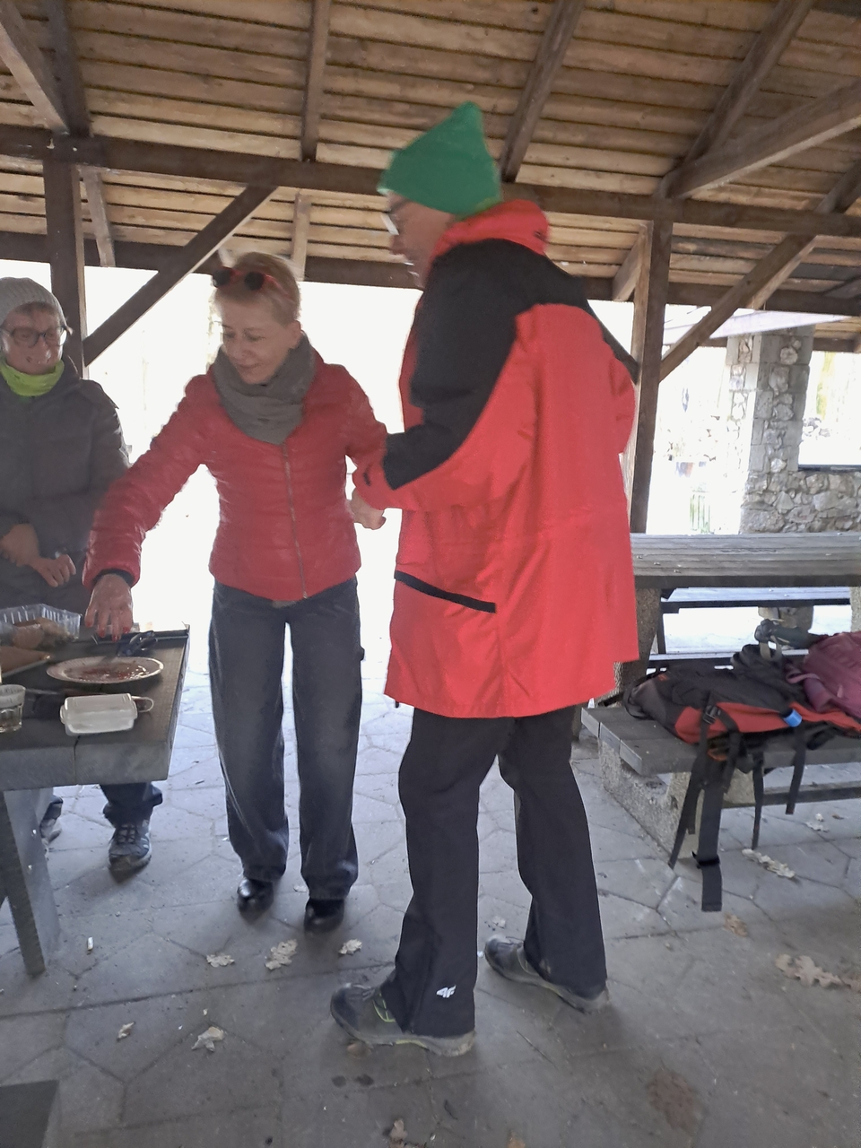 Jak na zwyczaj wigilijny przystało, przystąpiliśmy do posilenia się tym co zostało przytaszczone w naszych turystycznych plecakach. Okazuje się, że są one bardzo, ale to bardzo pojemne! Stoły zostały zastawione wieloma rodzajami śledzi, pasztecikami, kapustą z grochem, gorącym barszczykiem czerwonym i oczywiście różnego rodzaju słodkościami.