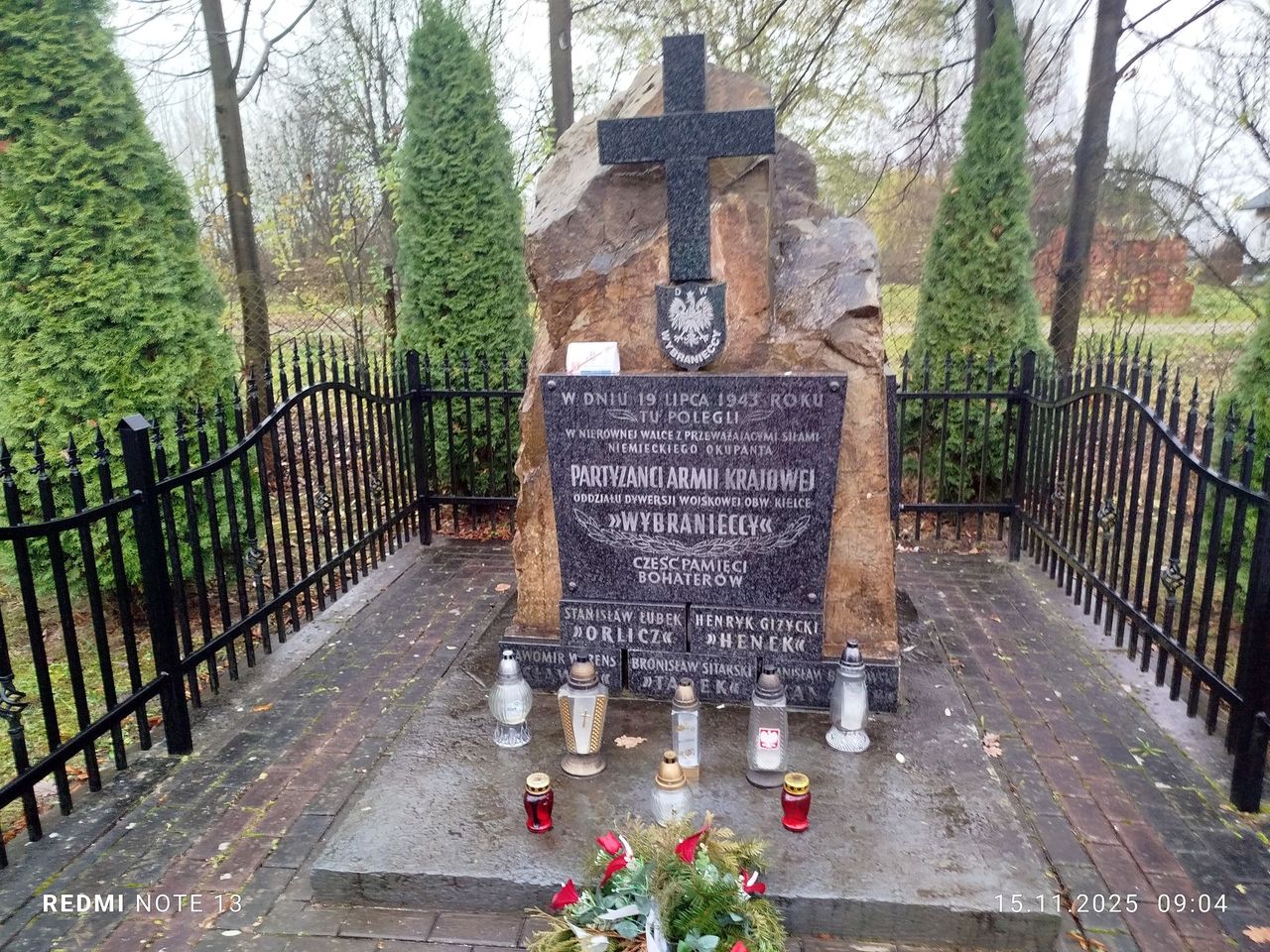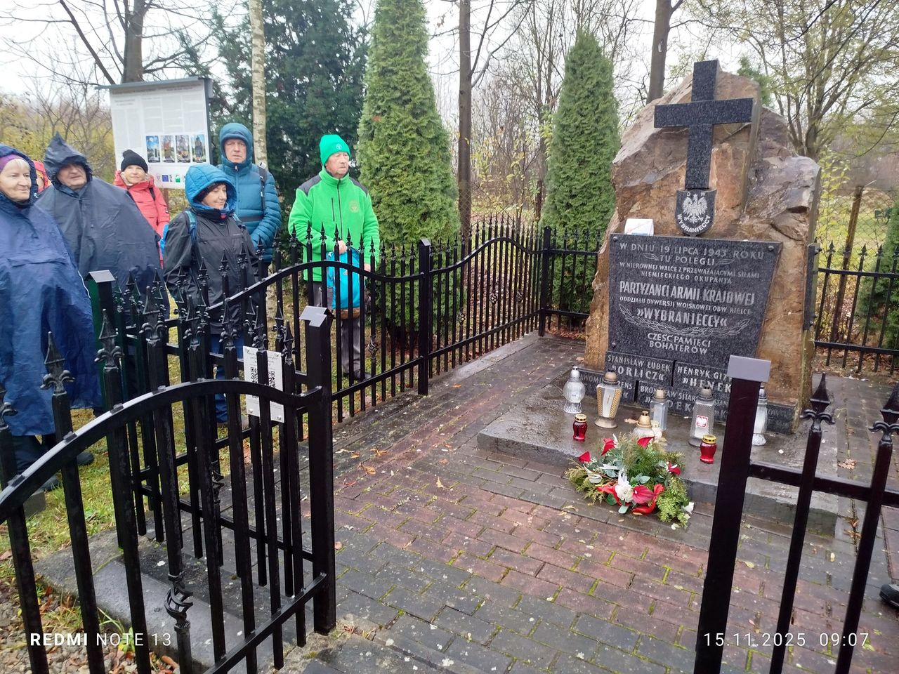 Podobna płyta wmurowana jest w murze cmentarza, gdzie pochowani są Wincenty Żeromski i jego żona Józefa z domu Katerla. Niestety, dokładne miejsce pochówku rodziców pisarza nie jest znane. Zapaliliśmy też znicz przy pomniku upamiętniającym śmierć pięciu partyzantów z oddziału Barabasza, w dniu 19 lipca 1943 roku, po potyczce z patrolem żandarmerii niemieckiej.